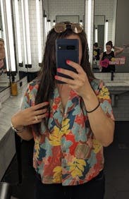 Really fun nice fitting resort shirt! Great for vacation. I liked it best with pants vs shorts with its length.
