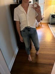 Marine Layer is one of my go-tos and I love their quality. From the photos, I thought the fabric was going to be more lightweight and flowy, so I was a little surprised when it arrived to find that it's more of a sturdy cotton. Overall it's just a basic white blouse. Nothing special, but but it feels high-quality and well-constructed.