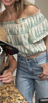 I wanted to wear this on my beach vacation but it was too cropped for my long torso and the shoulders wouldn’t stay down. I exchanged for a different top. I did love the fabric and print so I was a little bummed that it didn’t fit.