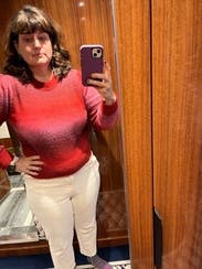 Loved the ombré red color! Sweater was cozy and not scratchy.