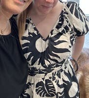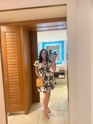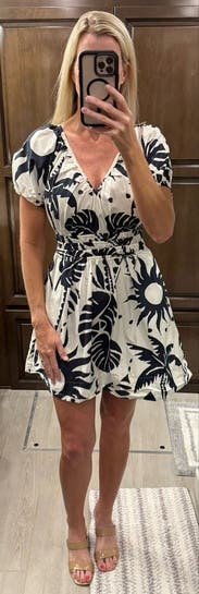 Probably could’ve sized down this dress was very stretchy and comfortable. The puffed sleeves were very cute