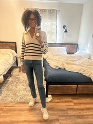 The perfect sweater. Comfortable, cute, perfect fit. Can dress up or down for an every day look. Didn’t want to return! Would definitely rent again.