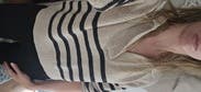 Slouchy feel, it was cut low enough for a flirty peek of cleavage. Paired well with many items.