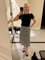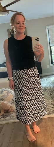 Love the pattern of this skirt and the two slits. Was perfect for work but could also be dressed up with heels. Would rent again!