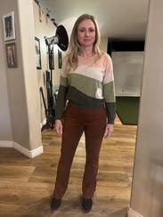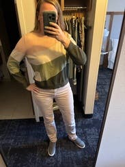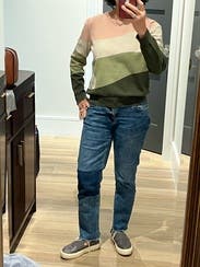 I really liked this - the colors made me happy in the late fall/early winter Midwest. It’s a basic cotton sweater, though, and stretches a bit after a day of wear. Runs TTS.