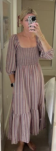 LOVED this dress. It is so forgiving, such a great fit. I would buy it but I'm postpartum and still working toward my pre pregnancy size. Otherwise I would have definitely bought it!!