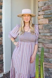 This dress is the perfect weight for the still very warm weather in Houston. The colors are muted so you don't feel too bold. It is very comfortable and easy to wear.