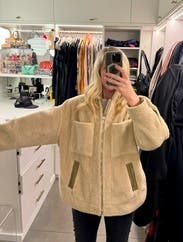 Loved this!! So cute. Got tons of compliments. Would have bought it but the back of the coat (green part) isn’t the fleece/sherpa material, so it just wasn’t warm enough to justify the cost. It’s meant to be oversized and absolutely is, so definitely don’t size up.