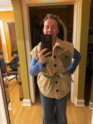 This vest is great for when you don’t want to put in too much effort but don’t necessarily want to wear athleisure. It is soft and warm. I wore a long sleeve body suit underneath and was fine in <40 degree weather.