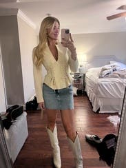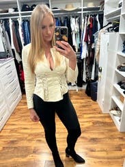 I liked the low cleavage for a date night. I wore it on a vacation in Jackson Hole, and it fit the western vibe. Got compliments on this.