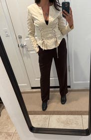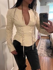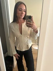 Loved this top. Have to admit it was slightly out of my comfort zone in terms of cleavage but I’m so glad I trusted my friends who said it was okay and wore it. It was such a hit and made me feel so comfortable and cute. Loved that the lace ups actually worked so was able to tighten accordingly. Fit great, true to size, 10/10!