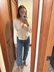 Jeans & a going out top, meet your maker! This top is so dang cute, my heart broke a little sending it back to RTR. But if you love something let it go. The shirt is very well made. Tight in all the right places and so dang flattering. I felt like a renaissance, pirate queen. But also just wore it out to dinner!