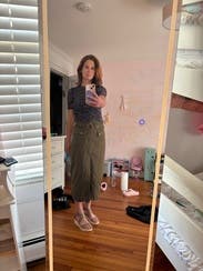I wore this with the Ulla Johnson Aurelia Floral Print top. The whole outfit rewarded me with many compliments. This is one of the few bottoms that fit at the waist for me and was not too tight for the sizing.