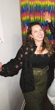 Wore with black blouse and boots to a party and with a white button up to work. Cute but high waisted and a little snug