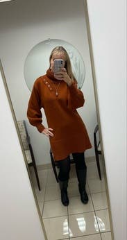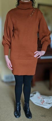This was super warm and the button shoulder was a fun detail. The dress did not sit right on my body. I am tall with a long torso so maybe it would look better on a shorter person.