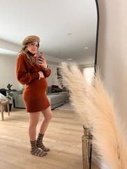 Christmas family party! First time that my extended family to see my belly and the sweater dress helped to show a stunning belly! I wear them with beige cargo/combat boots!