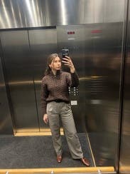 I got so many compliments on this! It fit with a little room on me and I probably could have sized down for a more fitted look