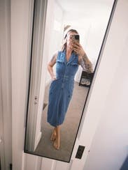 Lots of compliments on this one. This denim dress definitely hugs your curves in the best way. Not constricting in the least bit, gotta love a good denim with stretch.