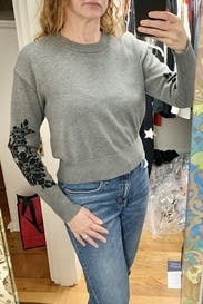 Floral-embellished sleeves make this casual Marissa Webb sweater a sweet pick for everyday style.