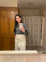 This was a great winter sweater to pair with jeans. I loved the pattern on the sleeves. It wasn’t itchy and it was a fairly thin sweater. Would definitely rent again.