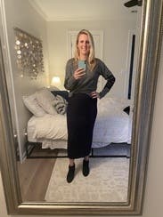 Comfy and elevated sweater I wore to dinner and just around and it was flexible for both.