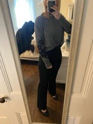 Just a great, better-than-basic grey sweater. The details helped dress it up or down ...wore for work and date night