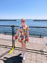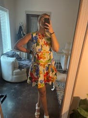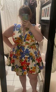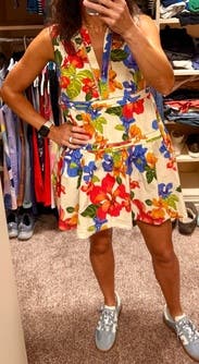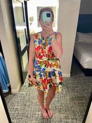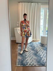 I wore this to dinner on vacation! I loved how cute and fun the pattern and fit are. It's definitely short, so I ended up wearing some shorts under it. The dress was a bit more triangle shaped on me than the picture shows.