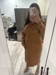 Nothing but compliments! Perfect fall/winter statement piece! The faux leather feels luxurious, and the insulated lining keeps you warm. Best worn in cooler temps due to the lining. The cognac color is stunning in person.