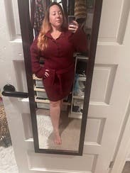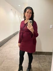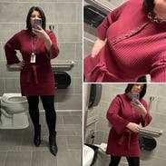 Loved the color and comfort of this dress. Knit is thick and held its shape well. Hugged your figure. Belt was a flattering touch.