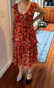 Absolutely loved this dress! It fit like a glove (I'm consistently a 2) and was so vibrant and fun. One of my friends even told me she doesn't usually like ruffles, but this dress changed her mind!