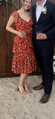 Loved this for my friends rehearsal dinner! True to size and hits right below the knee - I’m 5’5”