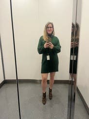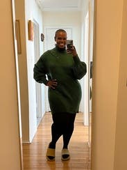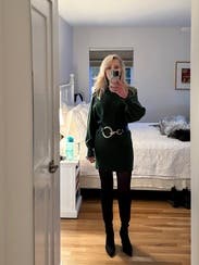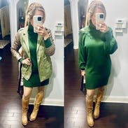 Loved this sweater dress! Maybe a little baggy, but that was the look. Perfect for a cool fall day and loved the color.