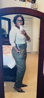 Wish I took a photo, loved the belted high rise waist, pleather sweat expected but worth it.