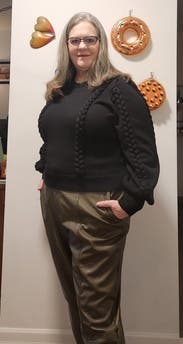 I’m not a big fan of trousers in general, but these fit well, are flattering & chic. Even as short as I am, this length works well with heels. Great look for office to Happy Hour.
