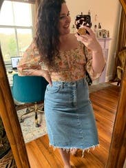But I’m a boxy girl! I’m usually an 8 or 10 in tops/dresses, but need a 12 in this. So cute with a skirt and definitely buying this!