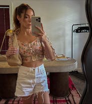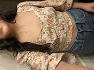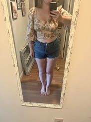 The cut and fabric of this shirt are adorable, it’s perfectly cropped and the material is like a soft thin denim. However, I wasn’t able to button it closed, it was too tight on my ribs. Gonna re-order next month and size up.