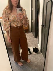 I loved the cut of this top! The neckline is really feminine and the pattern is so pretty! However, it was tight on me and is structured so there isn't much give. When I rent again, I'll size up.