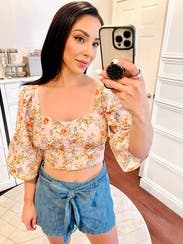 Love this beautiful crop. I’m normally a size 2, but I ordered a size up to give a little extra room in the chest area, which was perfect. I would suggest sizing up to others as well.