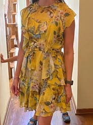 Very flattering flowy sassy yellow dress. True to size
