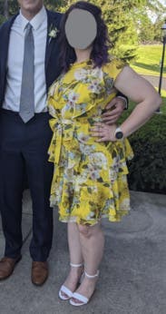 I wasn't sure how I would like this based on the picture. I couldn't really see how it would fit my curves. But I got so many compliments and I really loved it. Nice and flowing to keep you cool during the warm weather. And the yellow radiated sunshine both from my dress and my spirit.