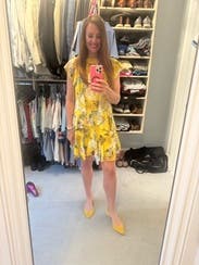 Loved this dress. Wear it to a nice party or just to Sunday church. Fun yellow color but it would be cute to pair with booties for a fall transitional look. Easy fit, feminine, nice fabric. 10/10.