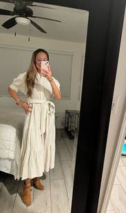 Such a great quality dress! Love the fit and the tie front makes it super easy to make tighter if needed.