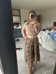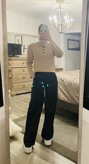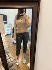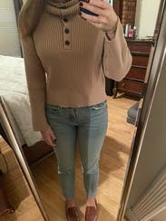Super cute sweater. I wore the neckline unbuttoned and flared open. I wish it was a little longer but overall a good fall sweater.
