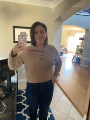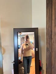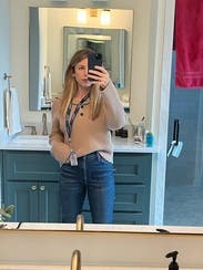 Got a lot of compliments when I wore this. Easy to throw on with jeans. I loved the uniqueness of the collar and the weight of the sweater is great for transitional weather and layering.