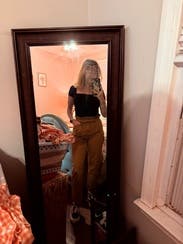 Looked like a paper bag but these kind of pants are what is in style so I made myself wear them, twice! They are super comfortable.