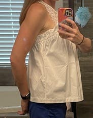 I think I would’ve loved this more if it wasn’t such stiff material. Cute top, but very uncomfortable fabric.