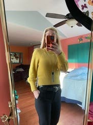 I loved this sweater. What might seem like a boring yellow sweater was so cute and versatile. I wanted to wear it so many different ways. I was sad to part with it, but would rent again.