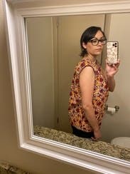 Material is light and the top is comfortable, but it was so baggy. Like, I felt like I was wearing a bag. I wore it with some dark brown slacks and a jean jacket over to tone down the puff.