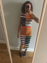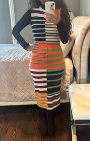This Marni dress is beautiful and so fun. It is a full knit material which is sort of funny with the just below the knee cut, colors and pattern very fun.