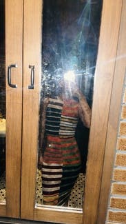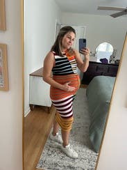 Wore for my baby shower and received many compliments. Loved all the colors! Nice and stretchy. Deducted one star because the tag was placed in a really weird place and was a little uncomfortable.